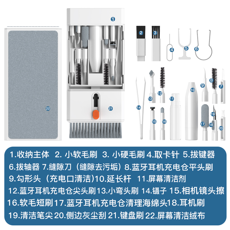 22合1键盘清洁工具多功能清洁套装 除尘刷灰神器清洗耳机屏幕电脑手机充电口笔记本清洁笔清理扫灰专用通用