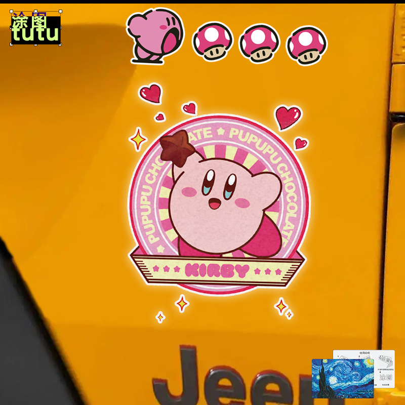 星之卡比划痕遮挡贴纸汽车个性 创意卡通电动车摩托车反光车贴