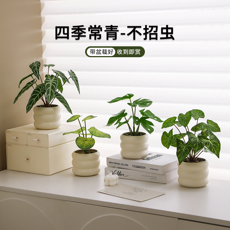 北欧仿真植物桌面盆景绿植盆栽室内办公室工位装 饰仿真花假花摆件