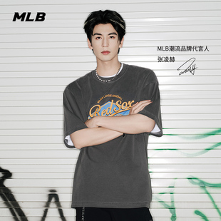 张凌赫同款 新款 男女时尚 25夏季 TSV07 复古胶片T恤学院短袖 MLB官方