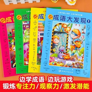 8岁找不同专注力训练益智游戏书籍幼儿视觉大挑战 书本儿童3 成语大发现全套4册图画捉迷藏大本找东西图画书幼儿园高难度隐藏