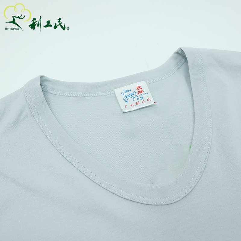 利工民100支纯棉柔软吸汗透气防臭双面鹿牌V领男短袖 T恤打底上衣