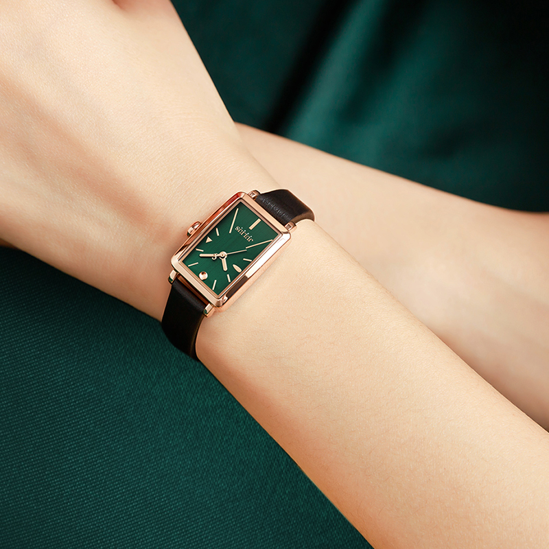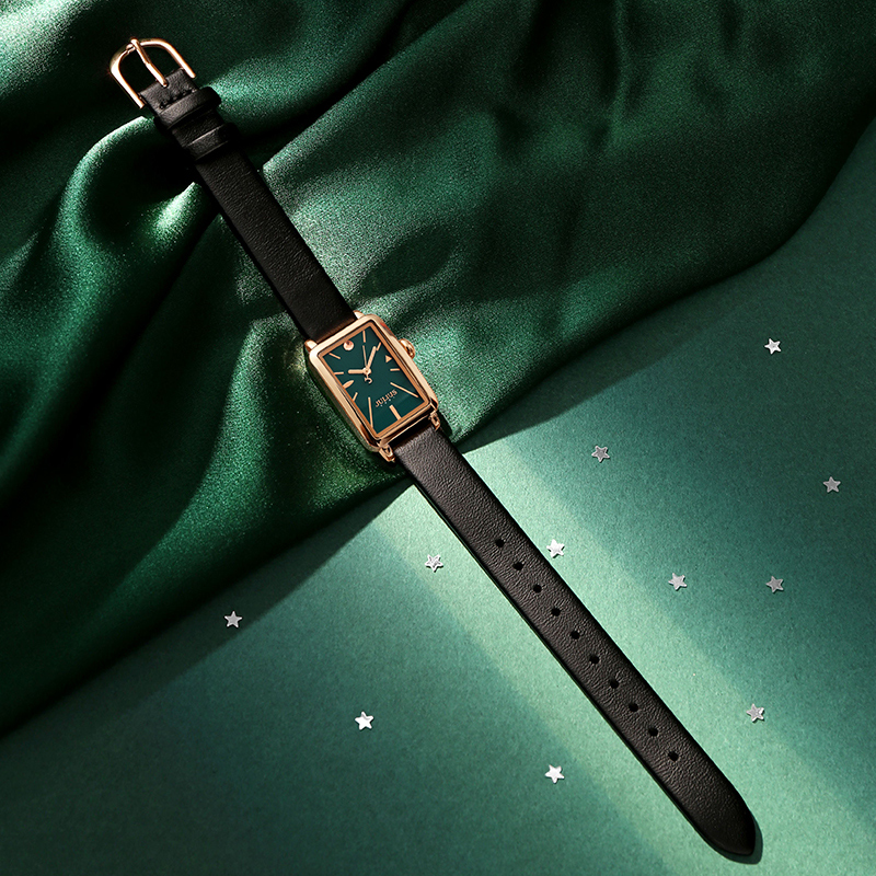 聚利时2025新款 小方盘轻奢设计女表 女士手表小绿表长方形手表女式