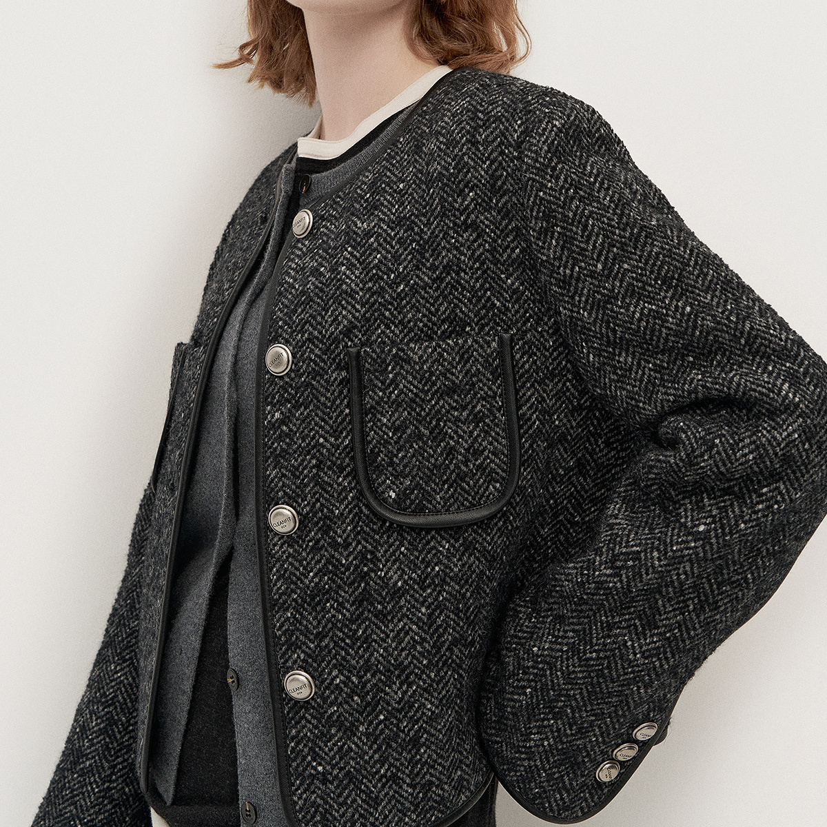 OCHIRLY欧时力 澳大利亚羊毛呢人字小香风外套高级秋冬新品