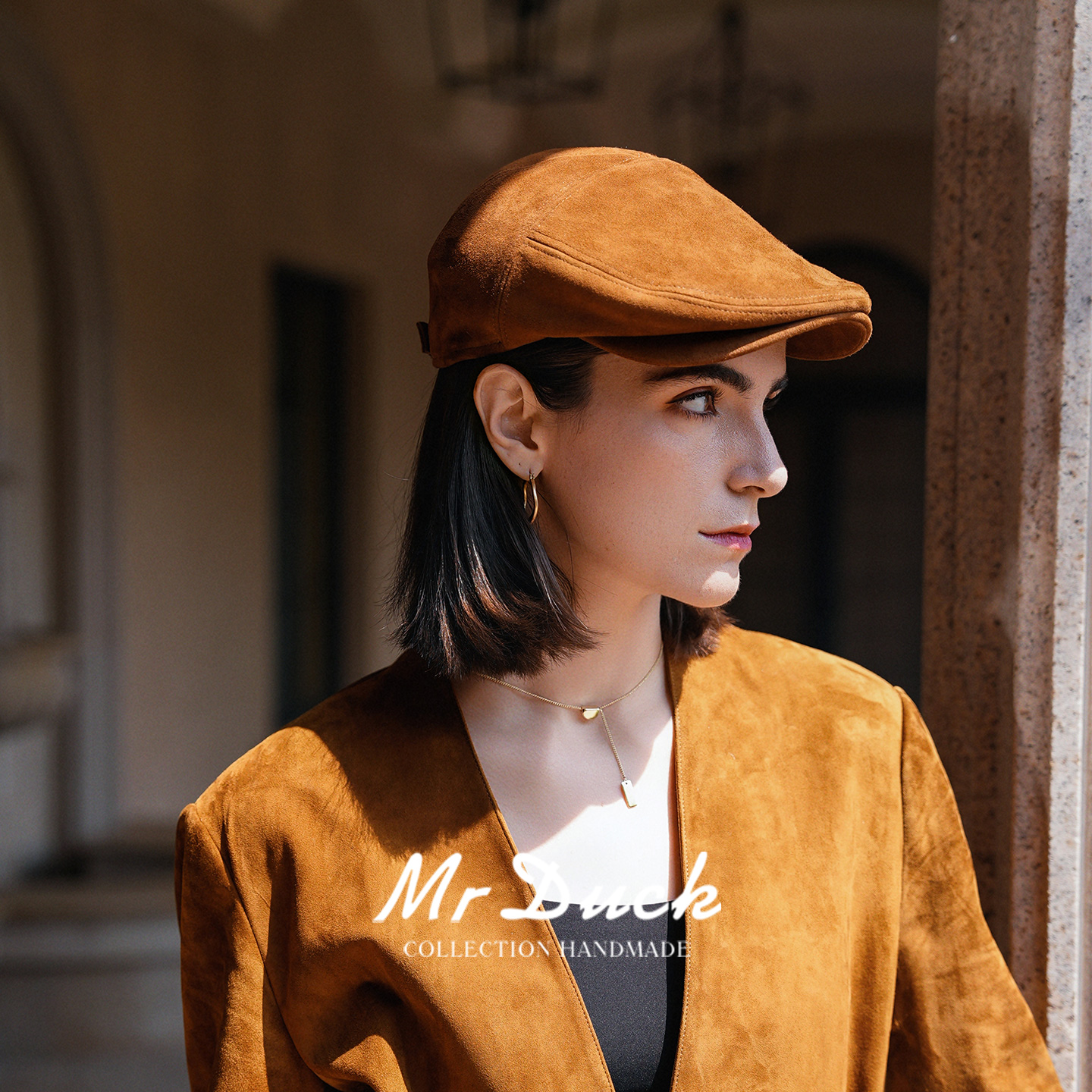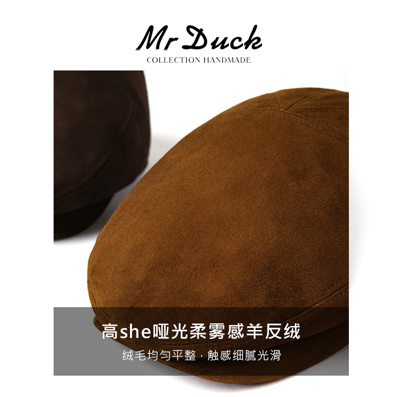 mrduck 真皮前进帽子女 复古老钱风进口鞣制混种绒面绵羊皮鸭舌帽