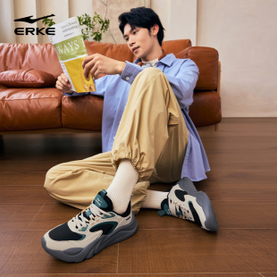 新款 秋季 革面休闲鞋 防滑鞋 鸿星尔克男鞋 子厚底网面透气跑鞋 运动鞋
