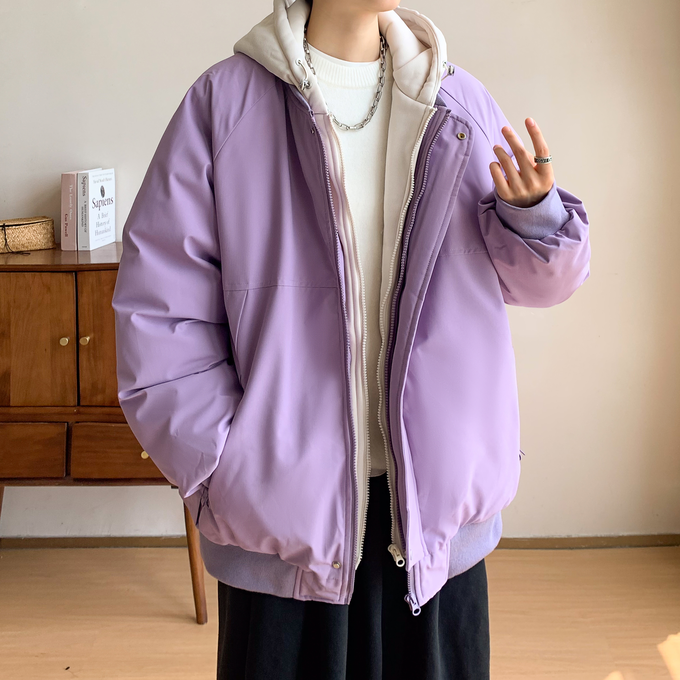 秋冬季 潮牌帅气百搭夹克 棉袄外套男立领潮流加绒加厚棉衣棉服韩版