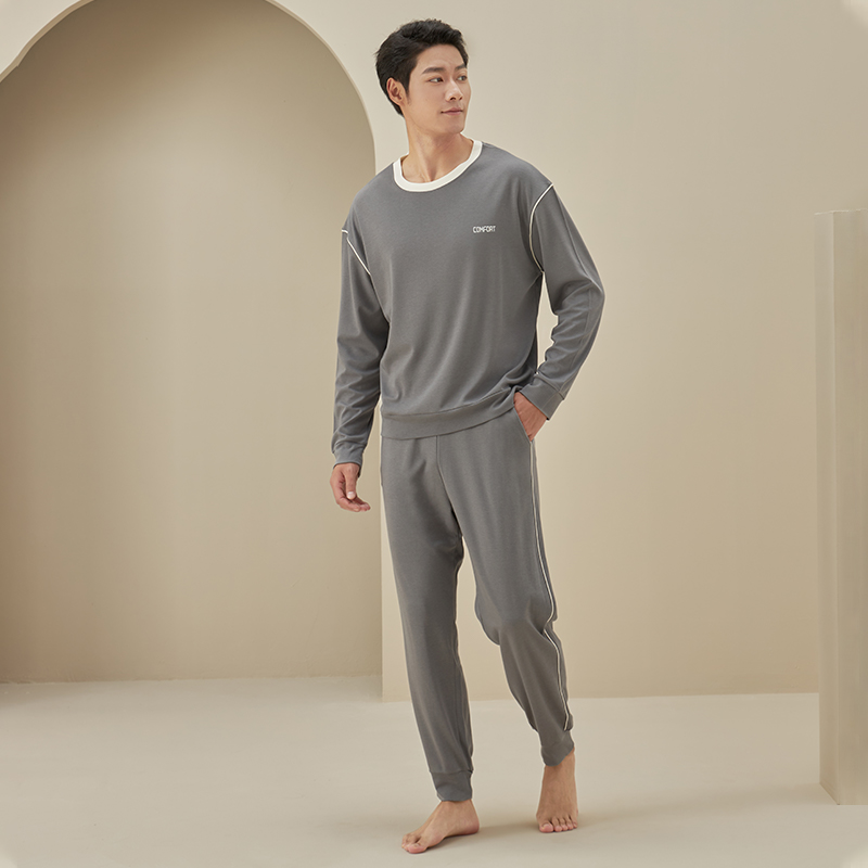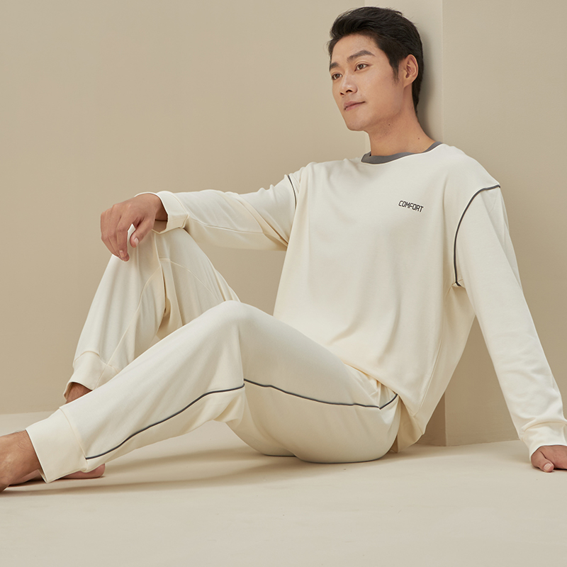 极简撞色 可外穿家居服套装 2025新款 纯棉长袖 睡衣女春秋季 轩靓