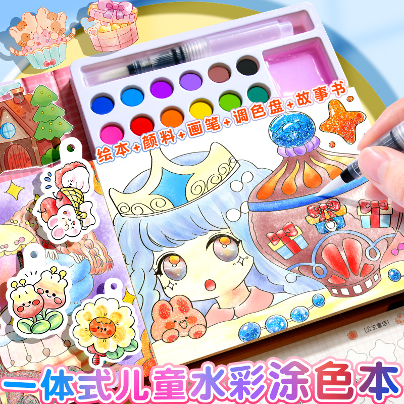 自带水彩画画本小学生专用摸鱼本幼儿园专用纸一年级儿童美术本宝宝漫画动漫人物描摹本水粉纸DIY涂鸦描画本