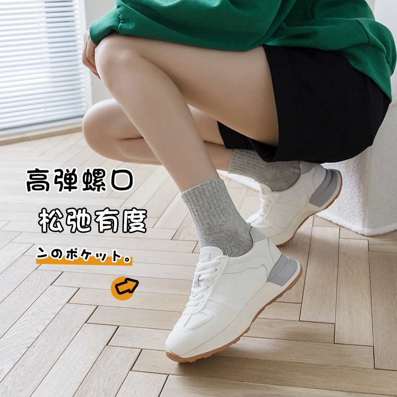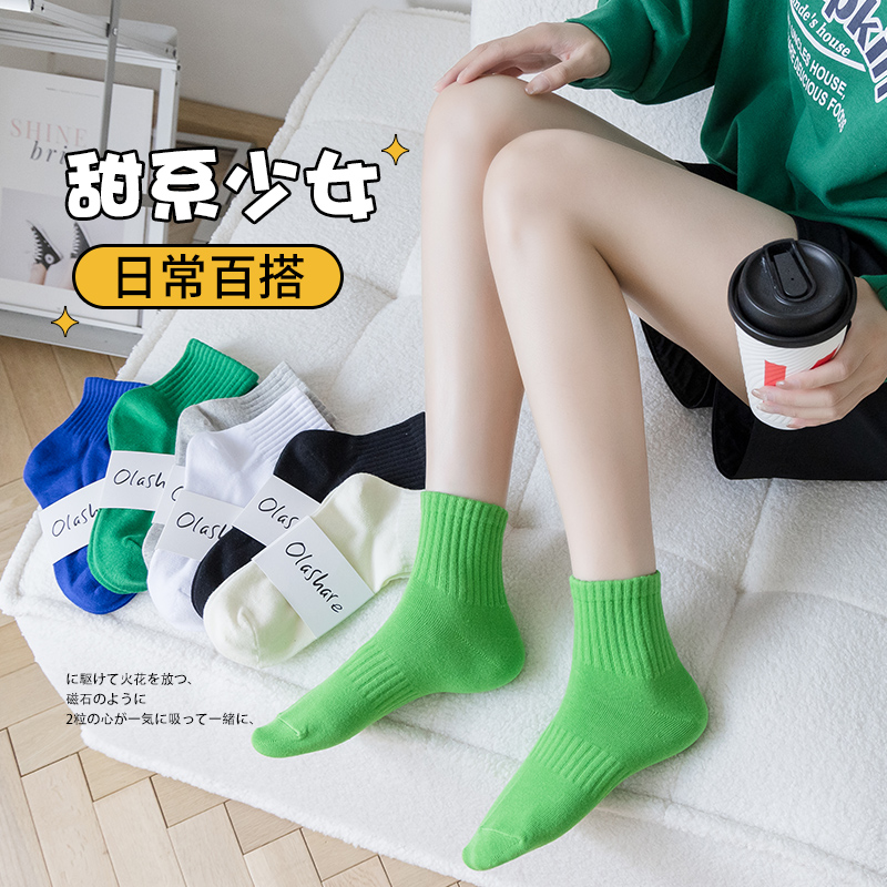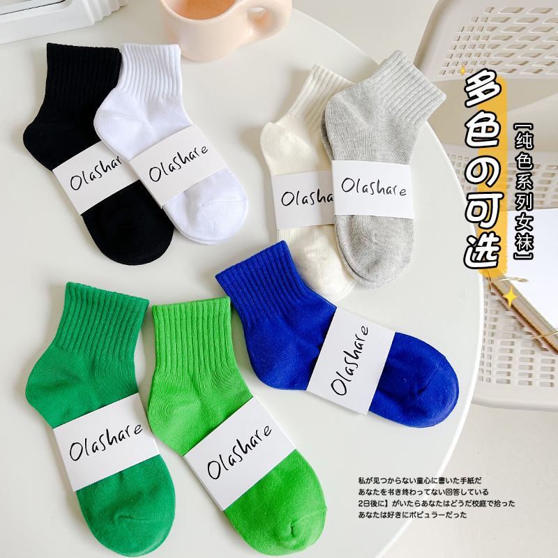 黑色袜子女春秋短袜秋季 青少年潮学生男运动低帮中筒袜白色 纯棉款