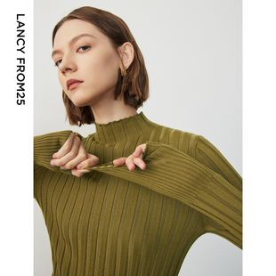 打底衫 女通勤上衣秋冬新款 复古螺纹毛针织衫 朗姿羊毛气质高领修身