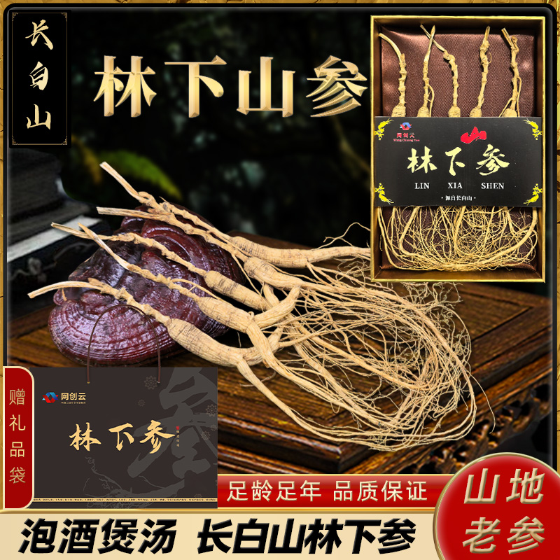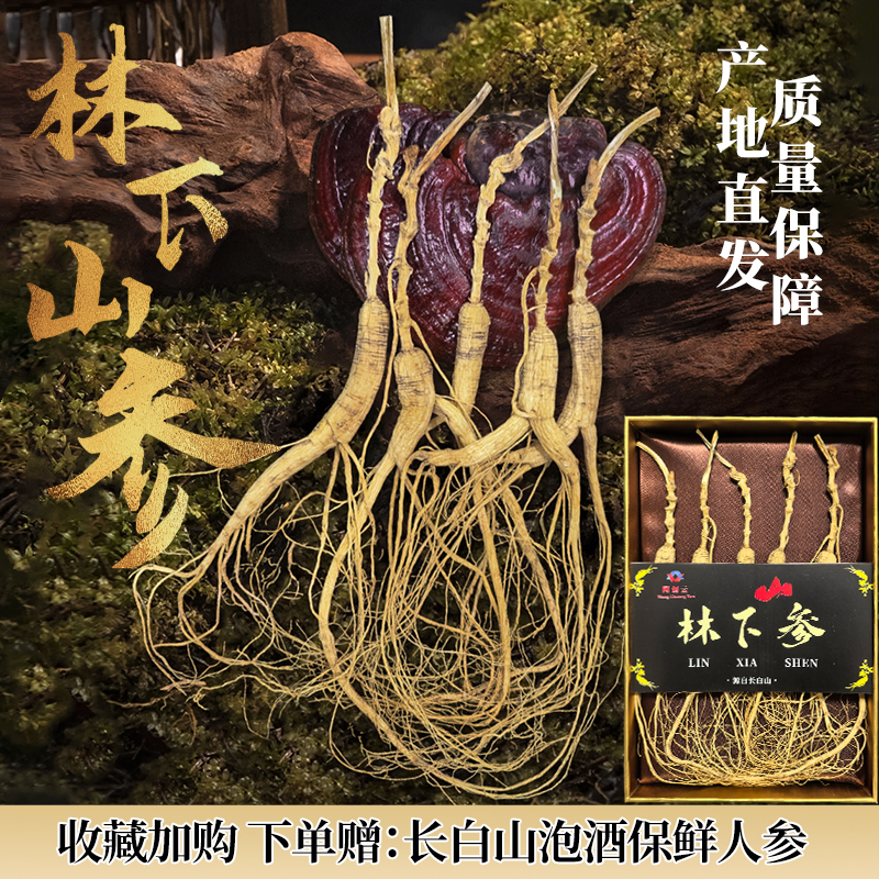 林下参山参长白山人参生晒干参正品 人参整枝林下山参礼盒泡酒煲汤