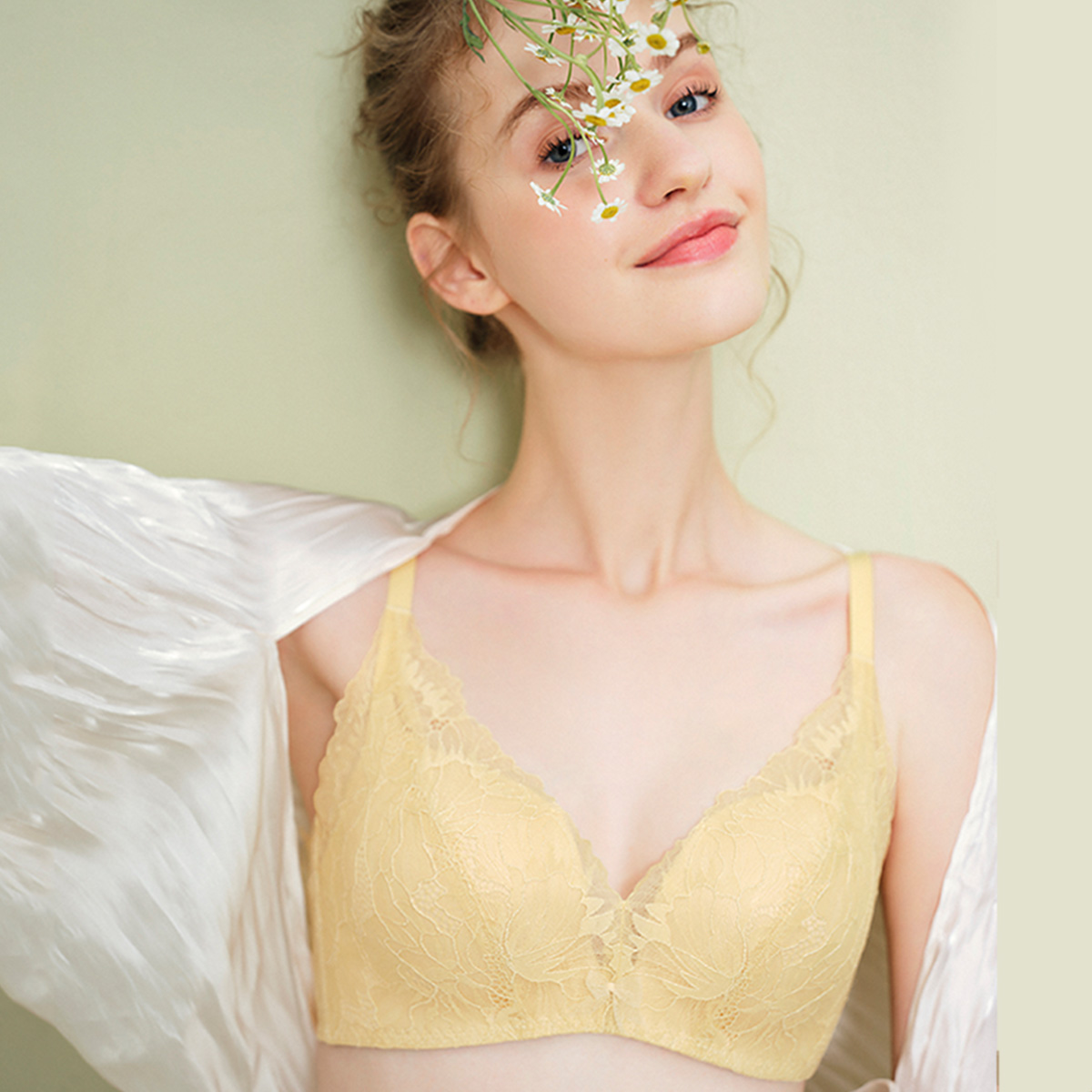 伊维斯无钢圈背心女固定胸垫胸大显小无痕蕾丝文胸 空气内衣