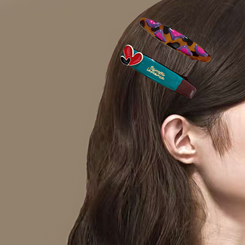 2025夏季 韩国小众设计感发夹 碎发鸭嘴夹 撞色爱心 包配件拎环