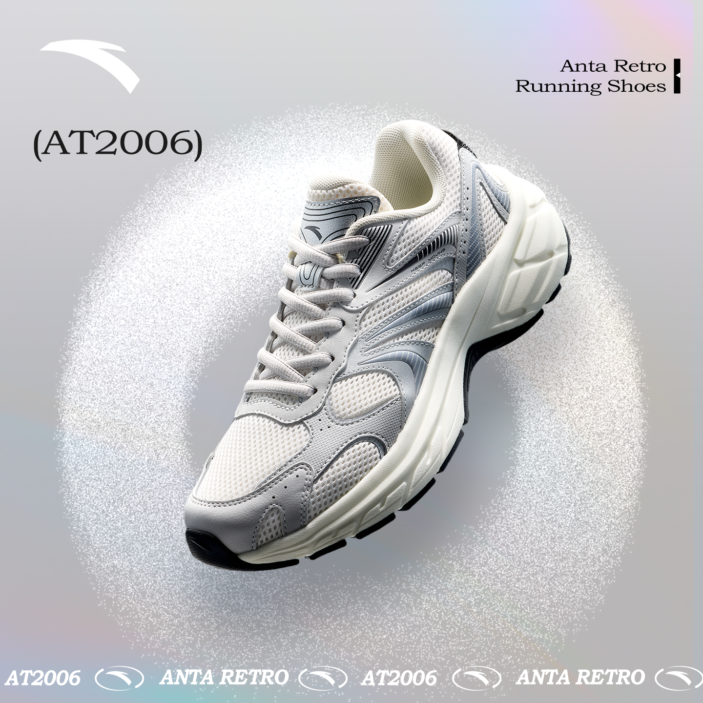 复古银色跑鞋 百搭潮流女鞋 女秋季 透气网面运动鞋 新款 安踏AT2006