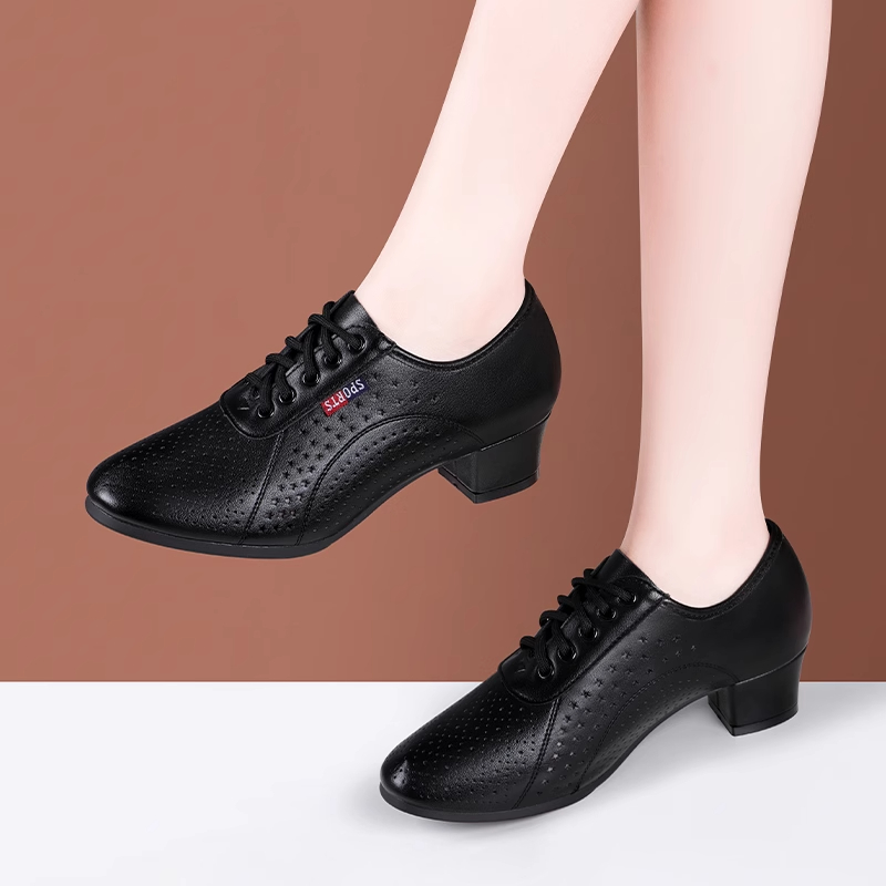 白色拉丁舞鞋 广场舞鞋 女成人软底粗跟跳舞鞋 舞蹈鞋 中跟舒适妈妈鞋