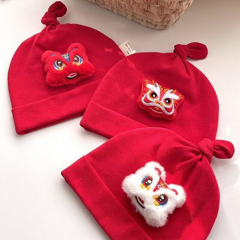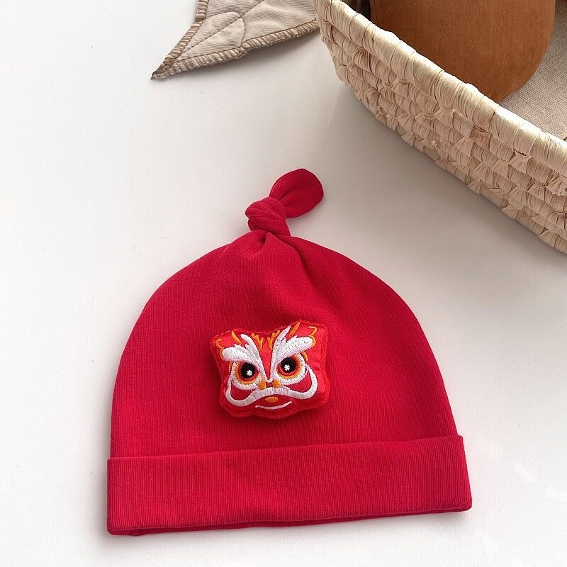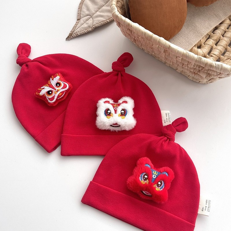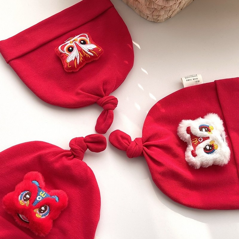 A类宝宝帽子春秋季 新年红色新生儿0小月龄满月打结胎帽初生儿