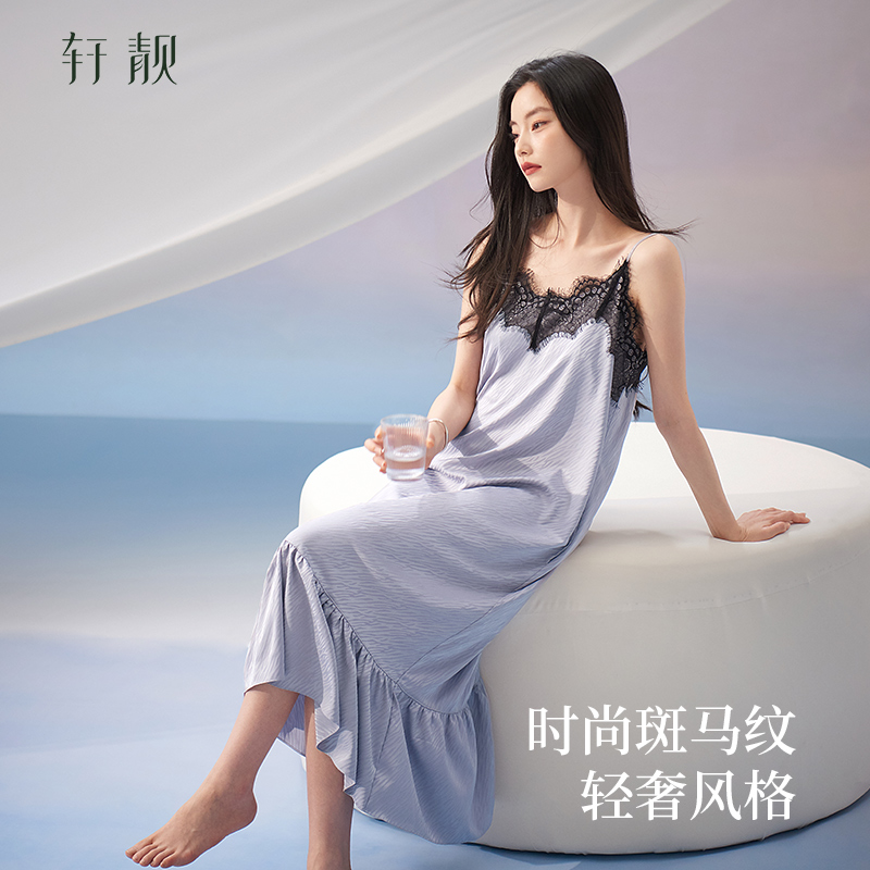 冰丝绸超长裙睡衣蕾丝性感连衣裙 吊带睡裙女士夏季 轩靓 带胸垫