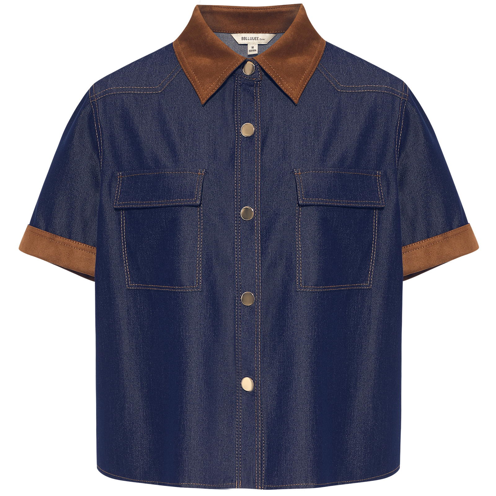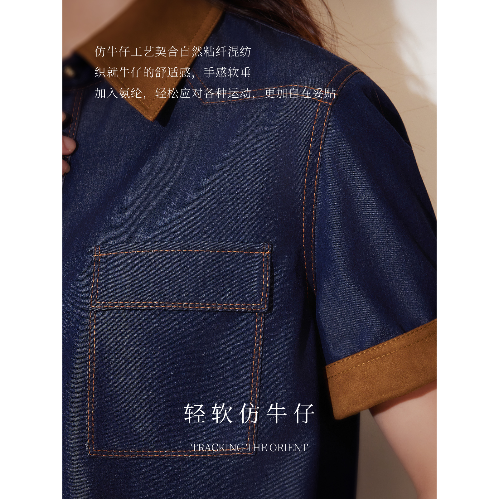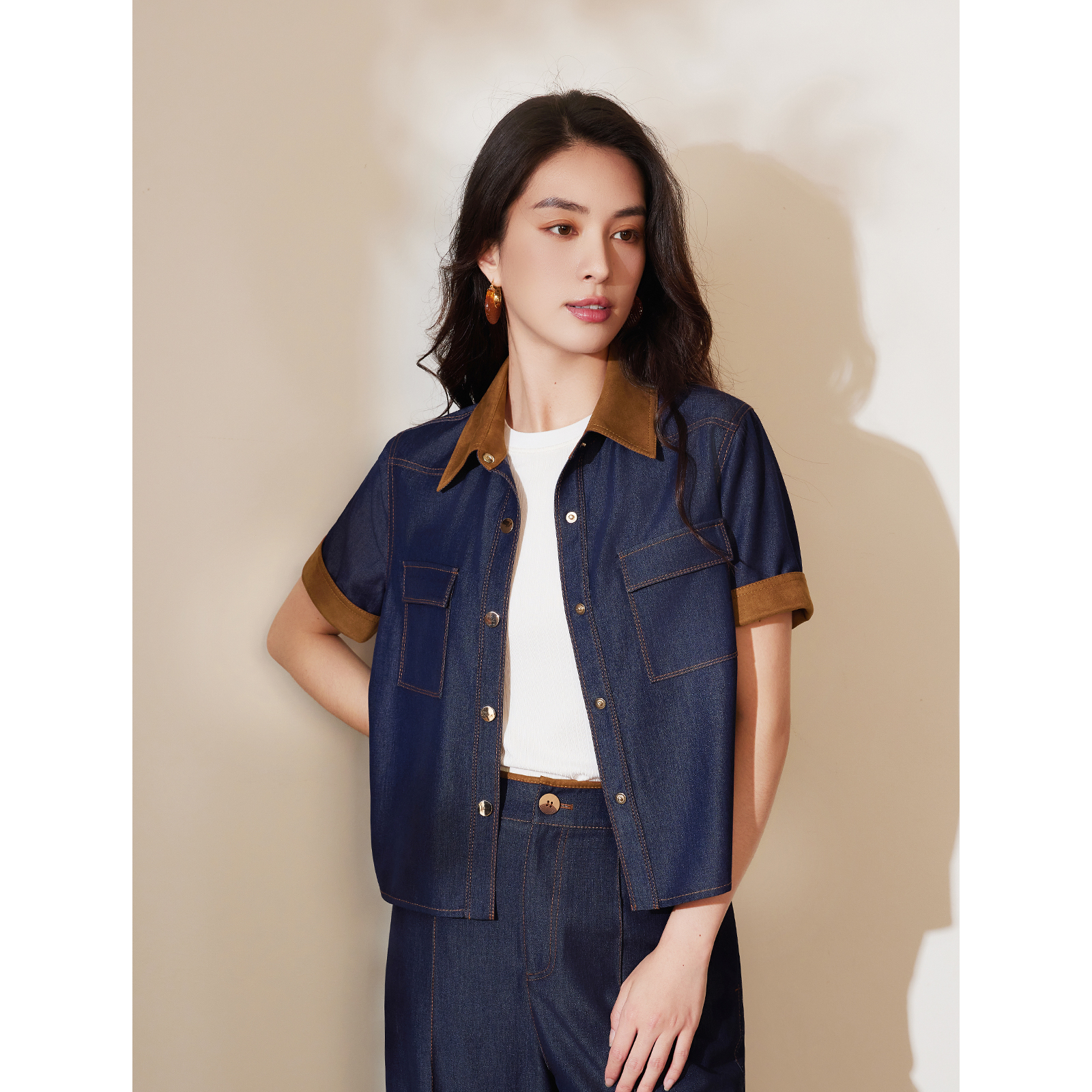新款 粉蓝衣橱2025早秋装 BBLLUUEE 撞色牛仔短外套女 都市港风