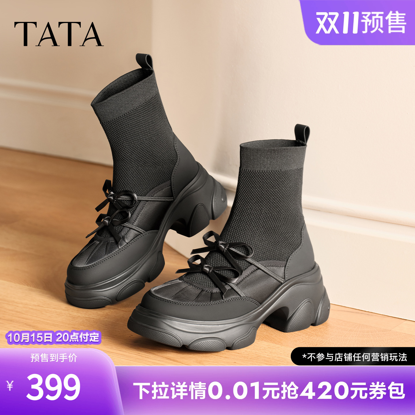 TATA他她喵爪靴2025冬季 靴弹力靴女靴瘦瘦靴厚底短靴CEG07DZ5 时装