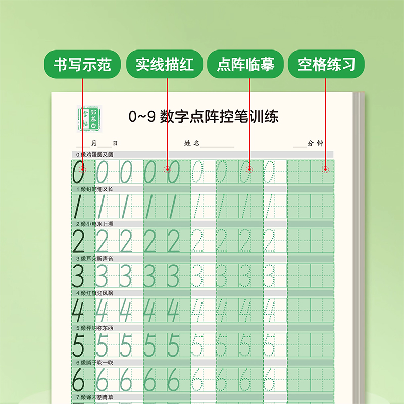 幼儿练字入门0 10幼儿园练字本田字格拼 9数字描红练字帖练习本1