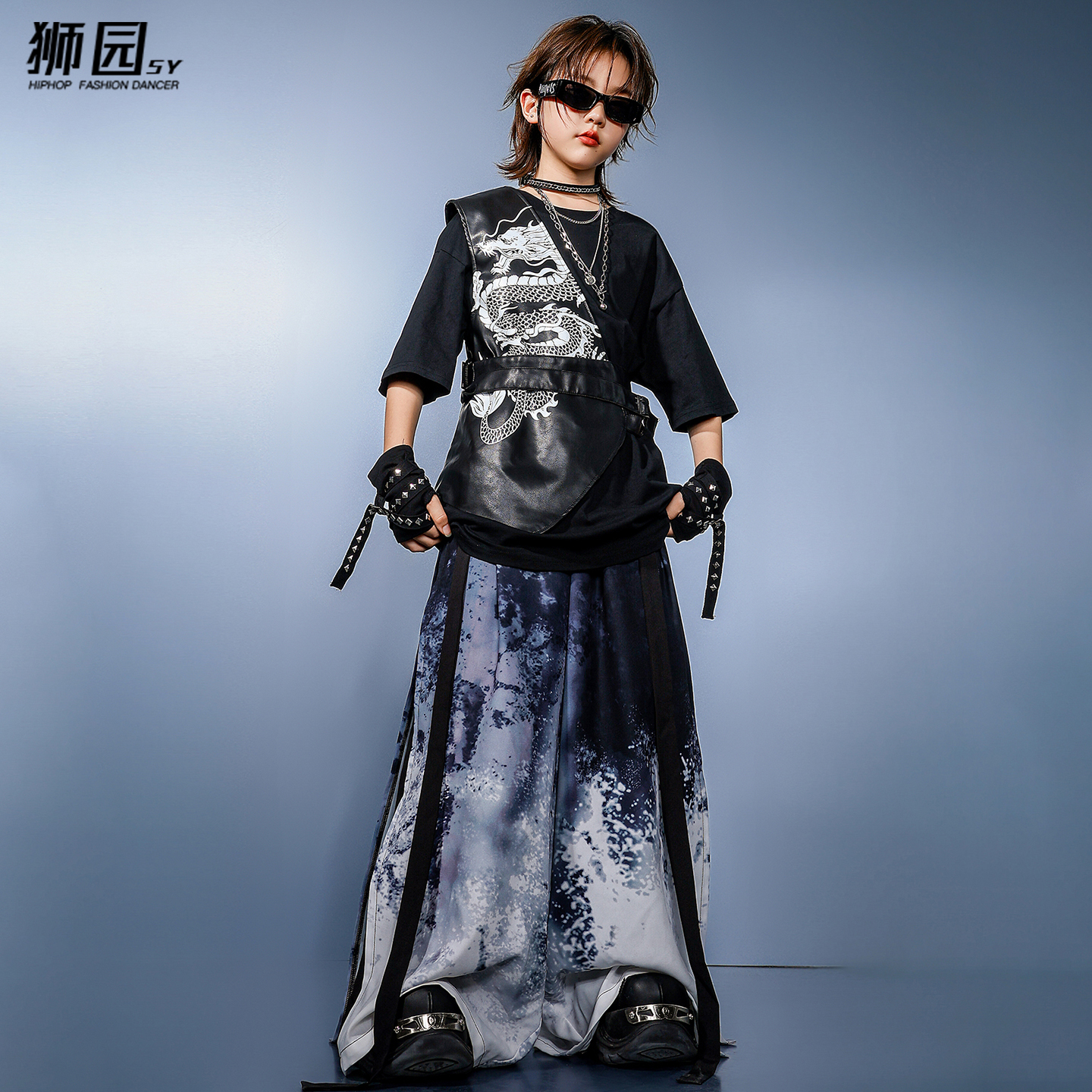 少儿中国风街舞演出服男女童新中式 儿童hiphop街舞潮服 武侠风套装