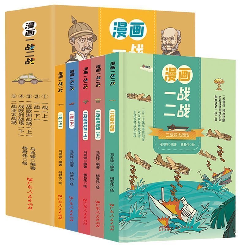 中国世界历史军事战争书 15岁儿童文学漫画历史读物二战历史书中国军事抗日战争书一战二战漫画书 漫画一战二战全5册 官方正版