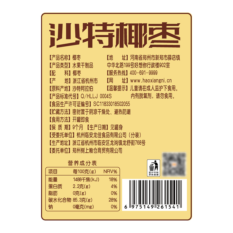 好想你沙特椰枣大颗粒进口特产原味纯正蜜饯水果干零食