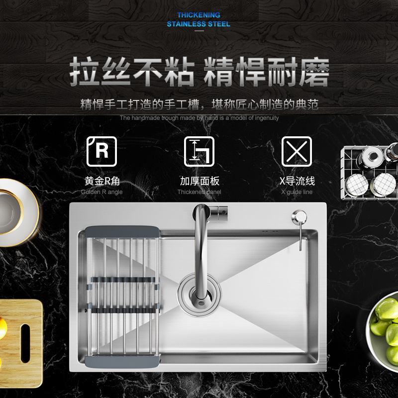 厨房水槽单槽洗菜盆不锈钢菜盆加厚手工洗菜池套餐水池洗碗槽台下