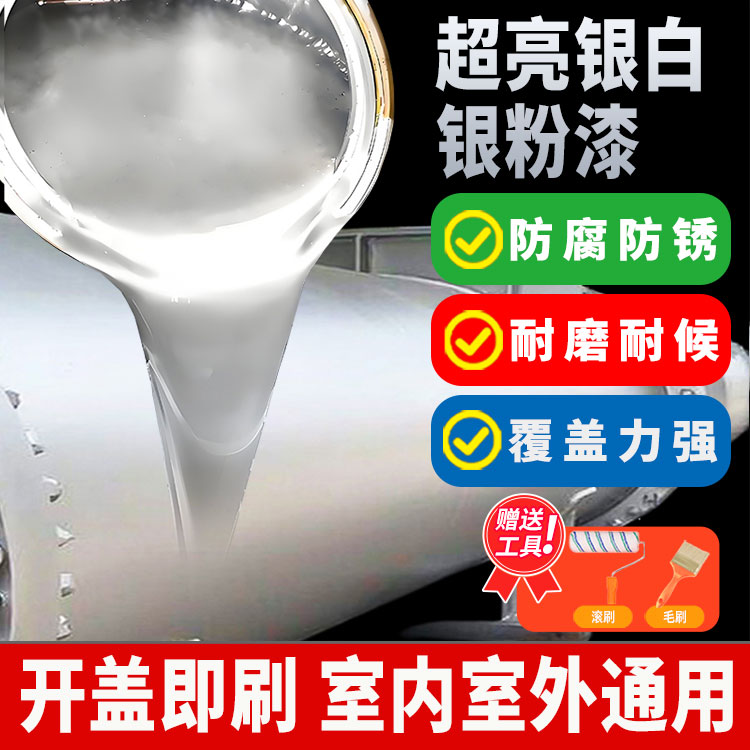 醇酸高光水性银粉金属漆镀锌管专用防锈漆防腐银色银灰色铁锈油漆
