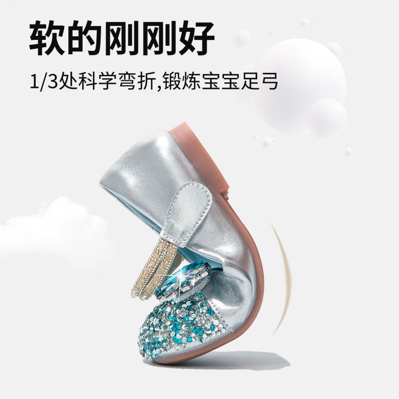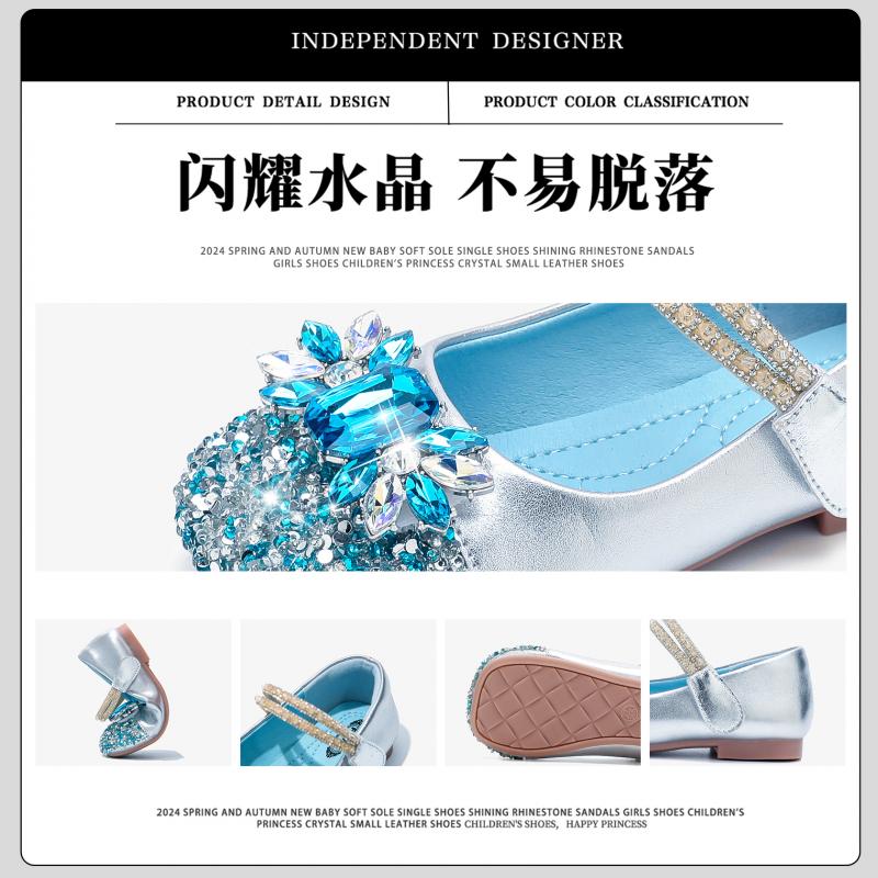 春秋亮晶晶女孩艾莎闪亮春季 2025新款 子儿童公主水晶小皮鞋 女童鞋