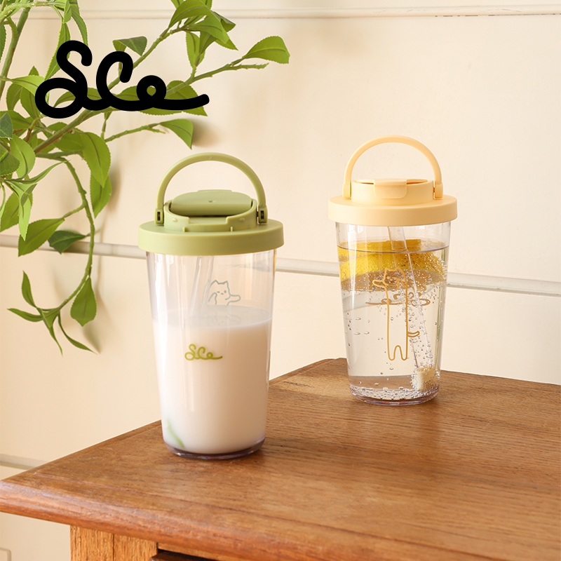 素生家居便携双饮杯母婴级Tritan塑料吸管水杯710ml可爱生日礼物