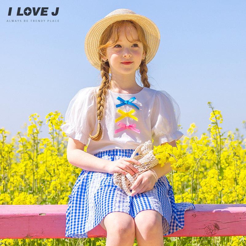 T恤泡泡袖 女童三色蝴蝶结短袖 上衣JXUTO03 2025夏季 ILOVEJ韩国童装