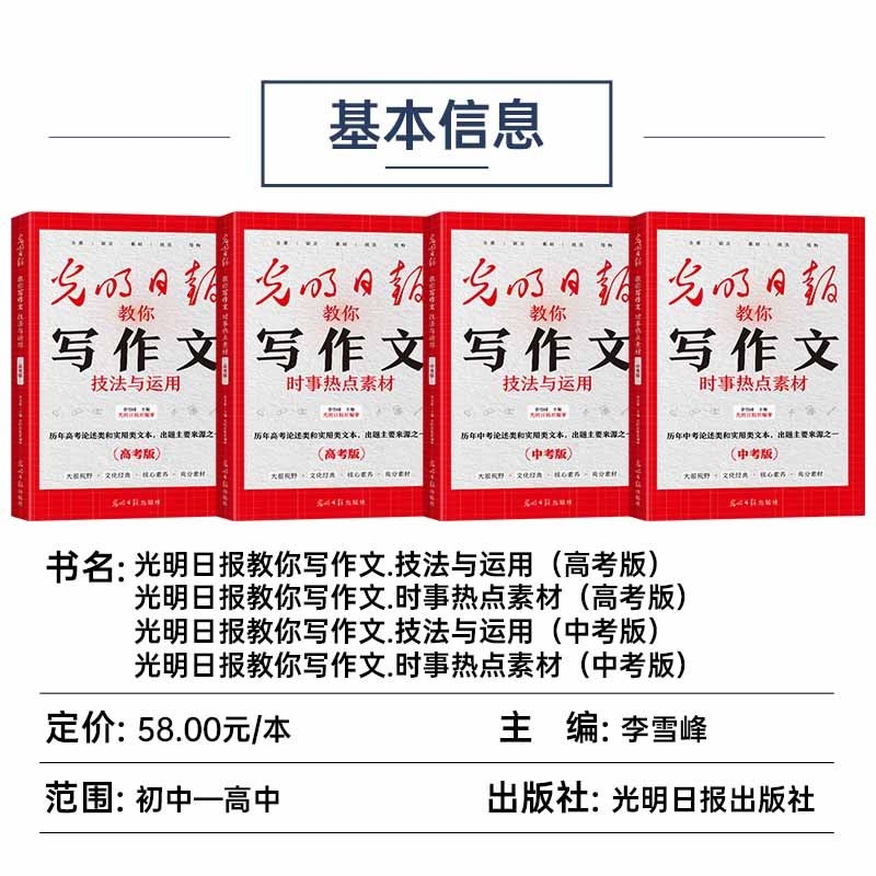 紧跟时事经典 光明日报高考版 光明日报教你写作文热点素材技法指导金句使用 时事热点素材技法与运用 运用高分满分作文写作书 中考版