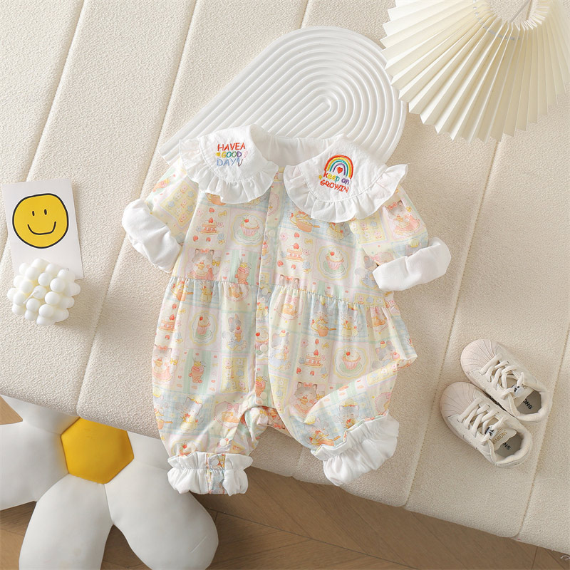 kmi婴儿衣服春装 新生女宝宝连体衣满月百天公主外出哈衣爬服春秋