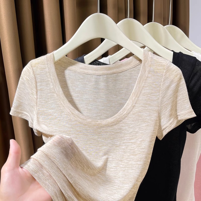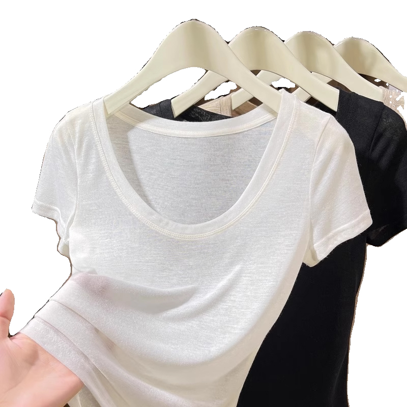 软糯显瘦冰丝针织上衣 新款 超薄大圆领天丝面膜短袖 t恤女2025夏季