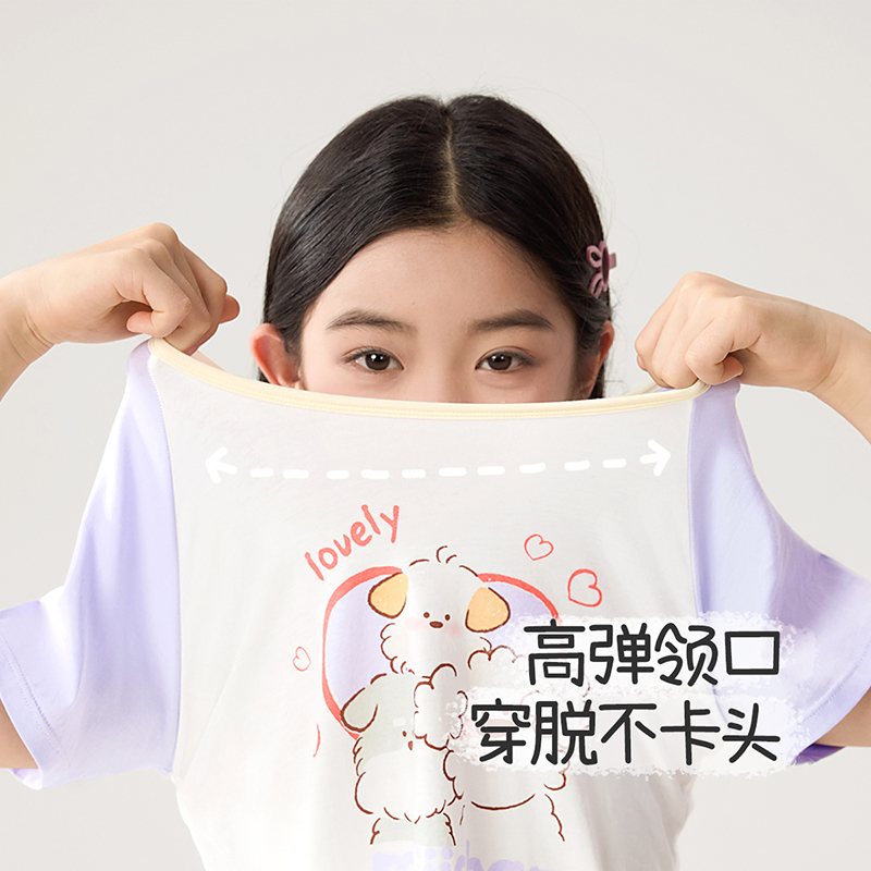 透气家居服套装 长裤 纯棉短袖 久岁伴miiiiichan儿童睡衣女童薄款