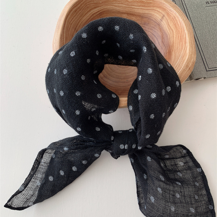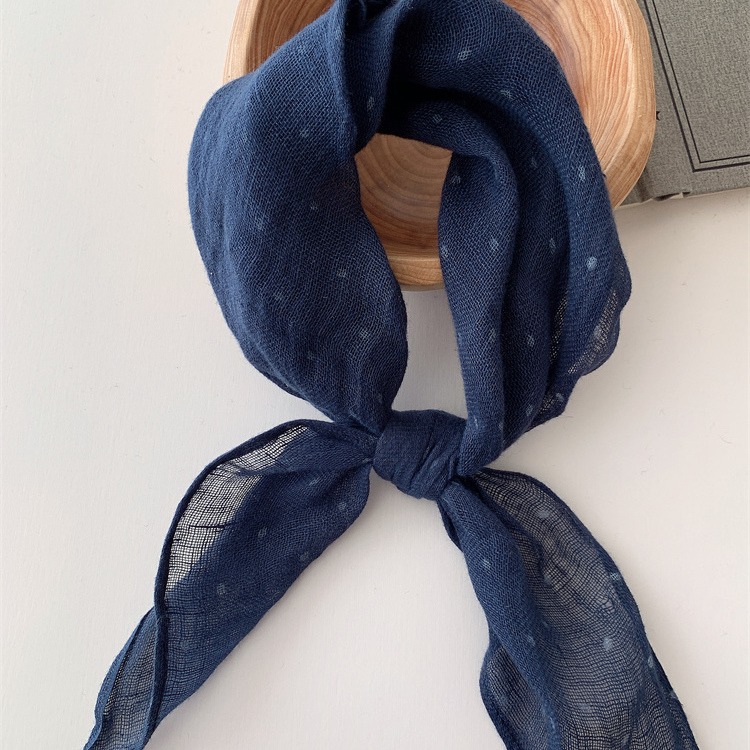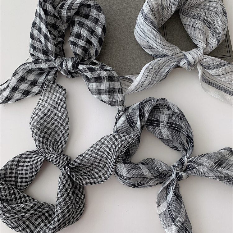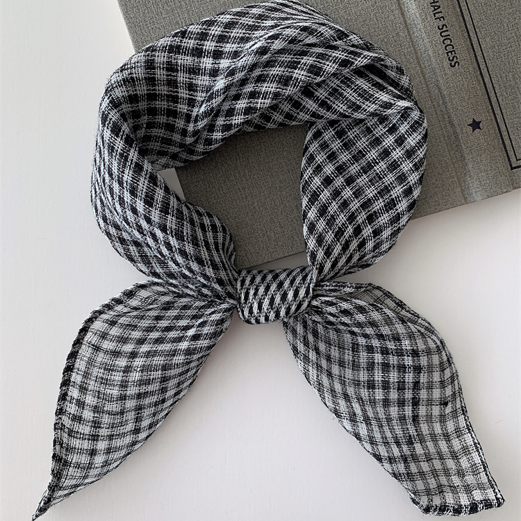 100%亚麻丝巾小方巾日系复古格纹方巾文艺百搭小丝巾发带配饰女