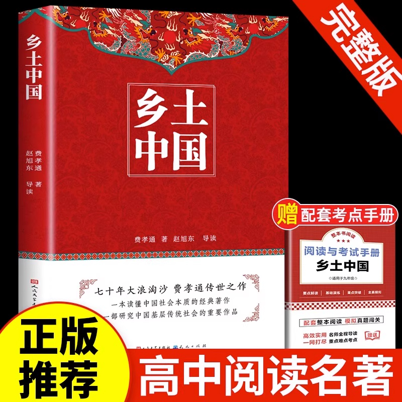 高一上册课外书名著语文书目书籍解读考点文言文经典 社费孝通著整本书阅读红楼梦原著无删减版 人民文学出版 乡土中国高中必读正版
