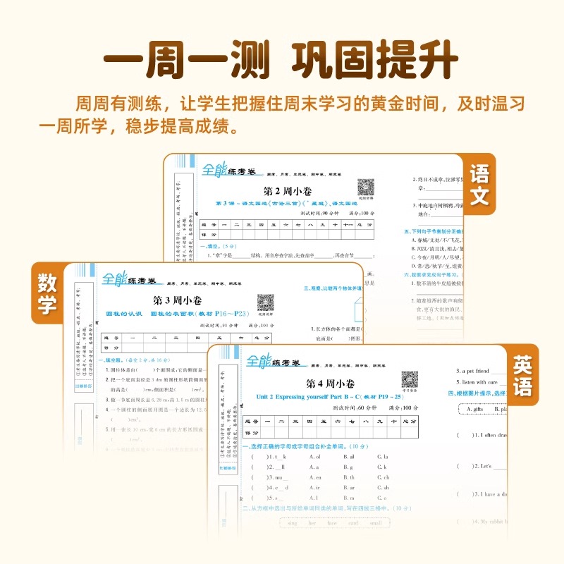 培优卷期中期末模拟考小测卷一周一练全能练考卷 同步考点单元 2025新版 荣恒周末小卷一二三四五六年级下册上册语文数学英语人教版