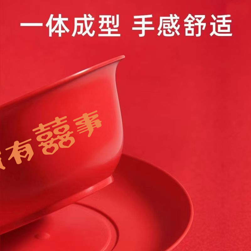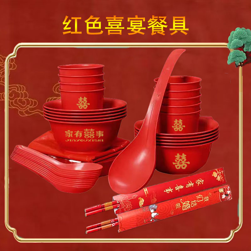 结婚一次性稻壳碗套装 加厚红色乔迁新居喜宴酒席家用餐具食品级