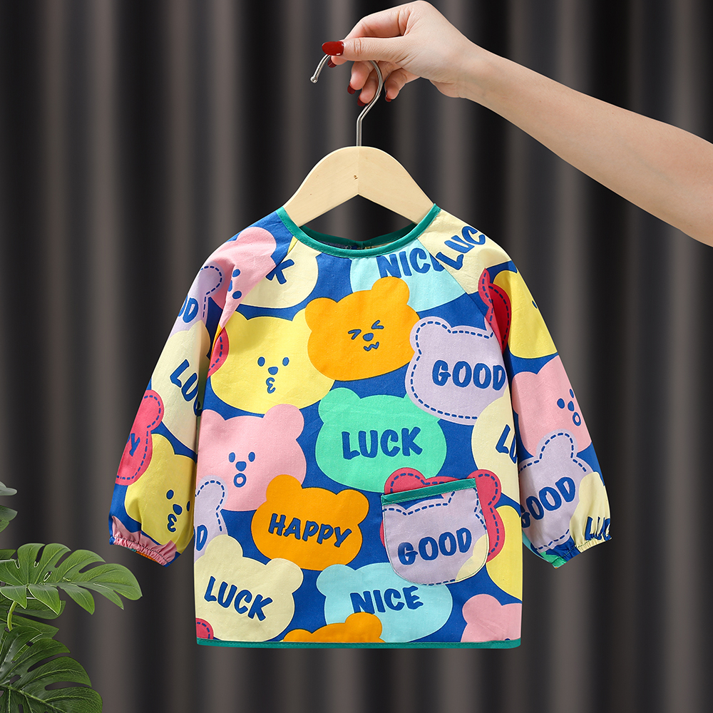 春秋长袖 儿童罩衣宝宝吃饭围兜围裙防水防脏男女婴幼儿反穿衣护衣