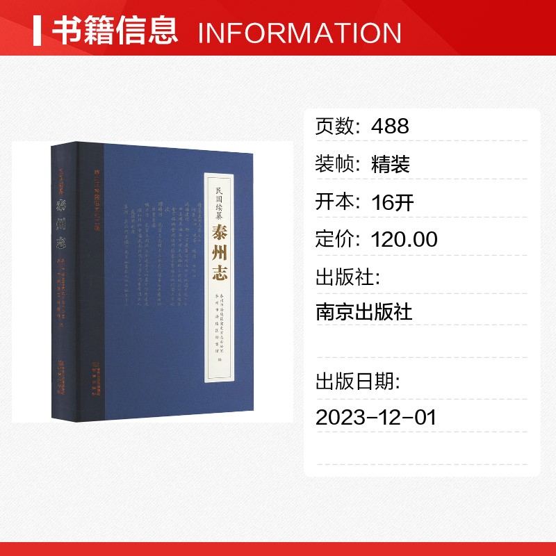 泰州市海陵区党史方志办公室 泰州市海陵区档案馆 编 民国续纂泰州志 新华书店正版 著 中国通史社科 图书籍 本书编写组