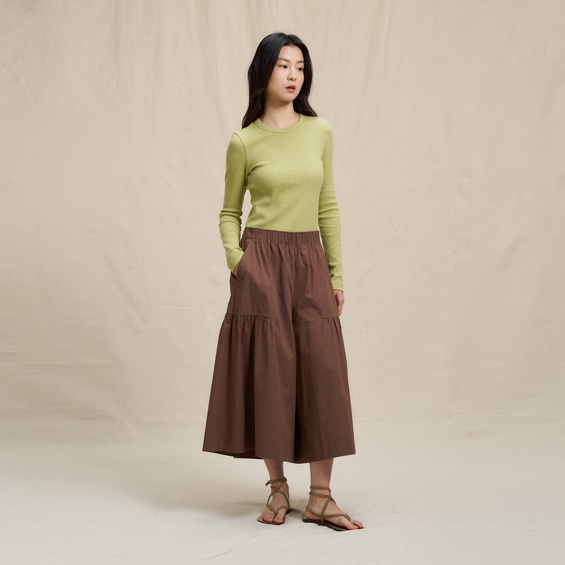 女士时尚 25夏季 素然WHM 斜纹强捻棉布抽褶宽松长裤 新品