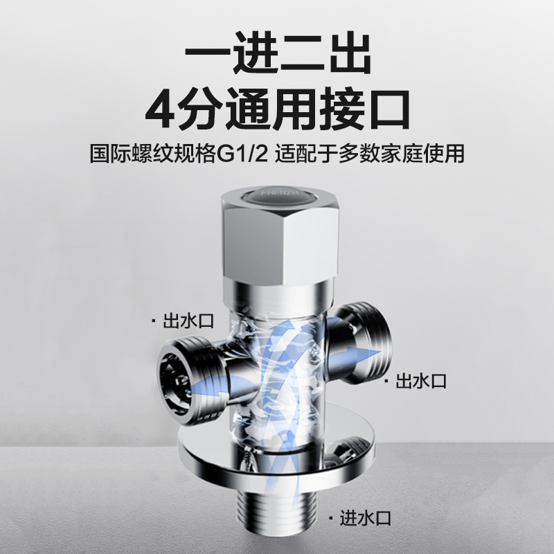 法恩莎角阀一进二出三通分水器带开关4分马桶进水阀门双出水止水
