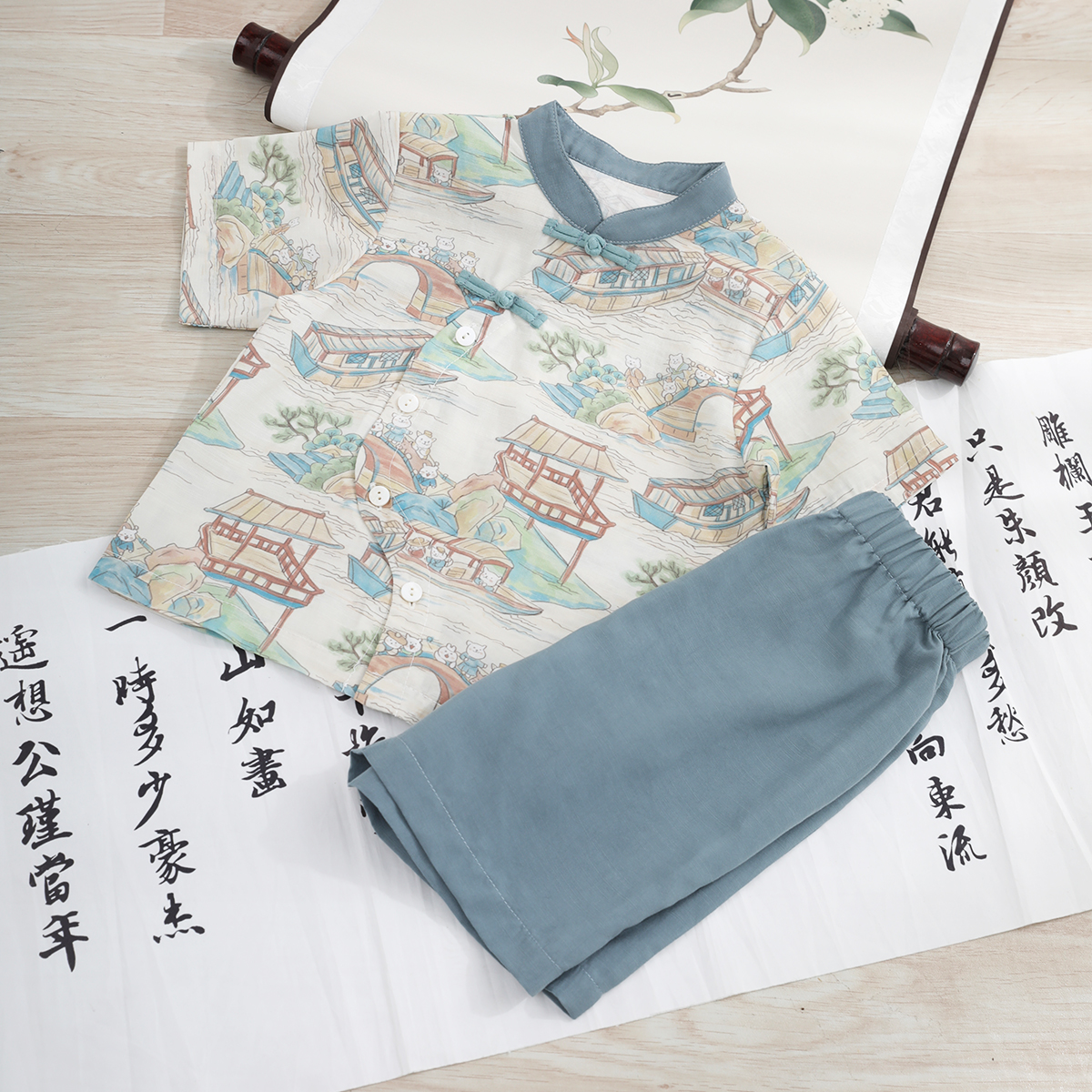 短袖 男童套装 儿童分体两件套薄款 凉感天丝新中式 汉服宝宝衣服 夏季