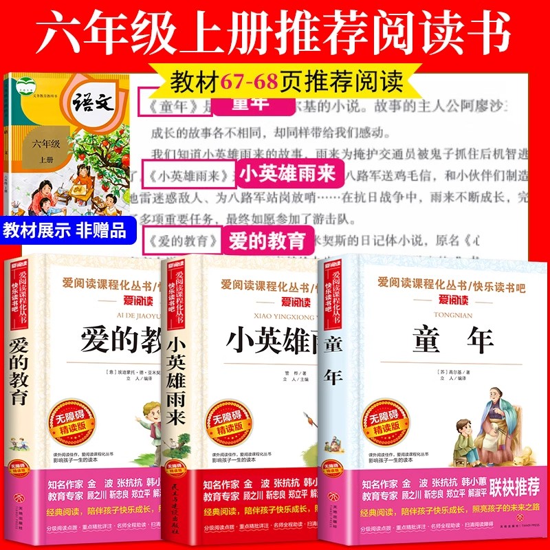 书目旅行 课外书小英雄雨来高尔基原著快乐读书吧六上记6年级阅读书籍3册Q小说汤姆故事名著经典 爱 教育童年六年级上册必读正版