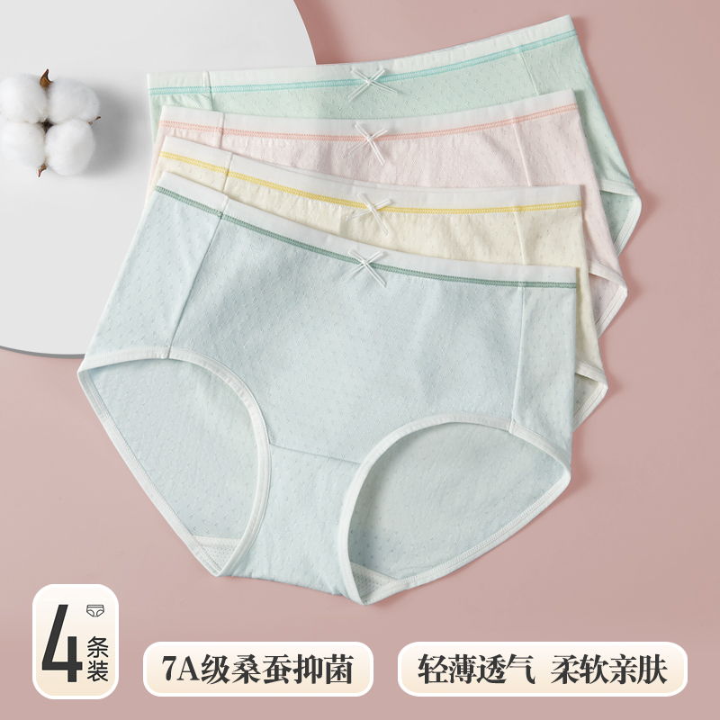 薄款 夏季 初中生发育期学生7A抑菌桑蚕丝少女三角裤 猫人大童女内裤