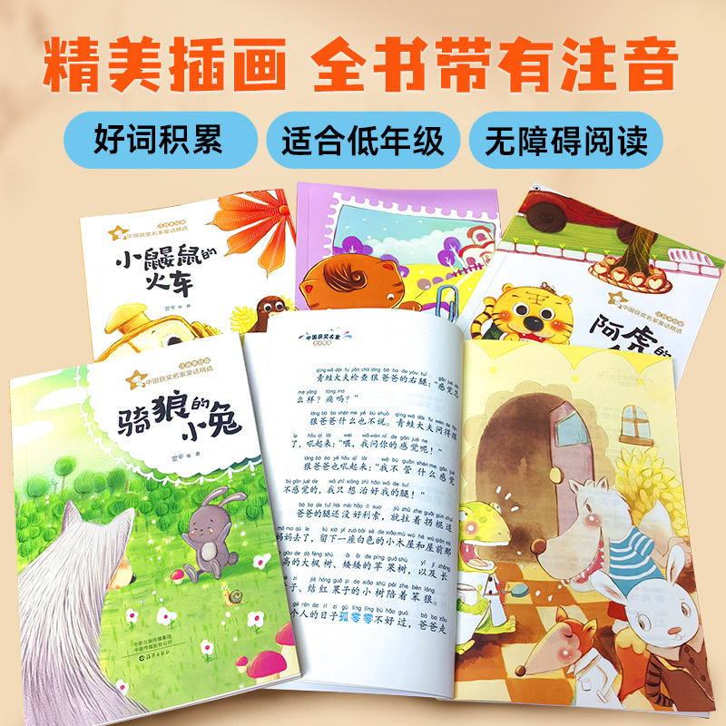 小青虫 小兔 猫咪 注音美绘版 塑封全5册 小鼬鼠 阿虎 梦 骑狼 中国获奖名家童话精选 名片 火车 吃字