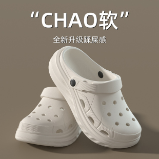 外穿包头凉拖鞋 夏季 2025新款 男士 女情侣踩屎感海边沙滩 简约洞洞鞋